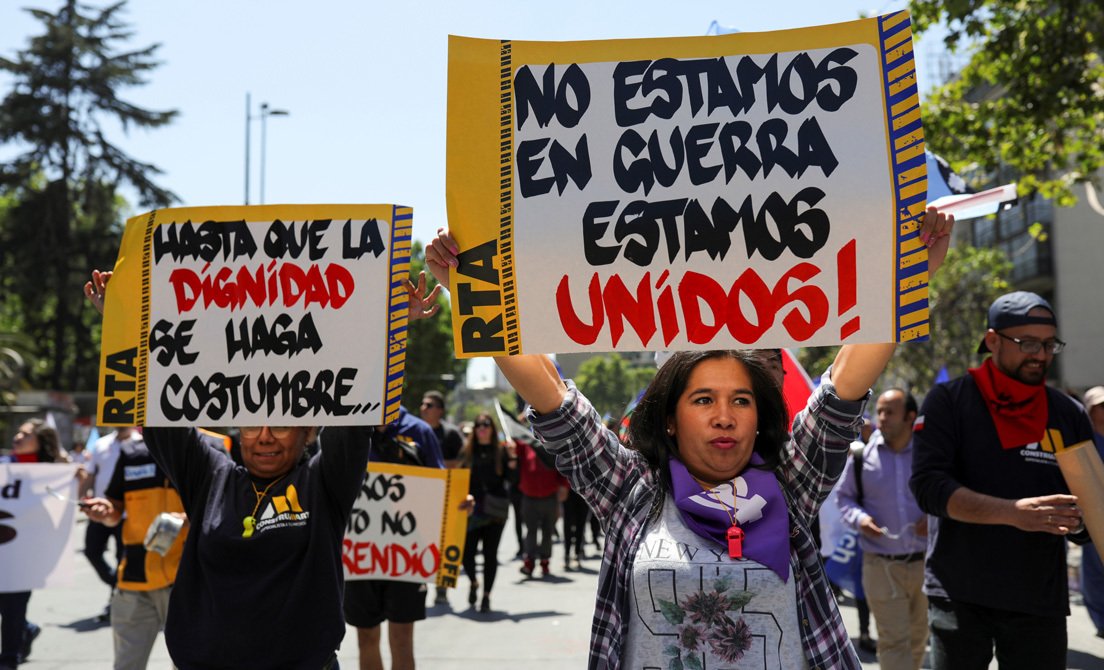 Una de las demandas principales de los manifestantes es la redacción de una nueva Carta Magna en el país, puesto que la que rige data de la dictadura de Augusto Pinochet (1973-1990).