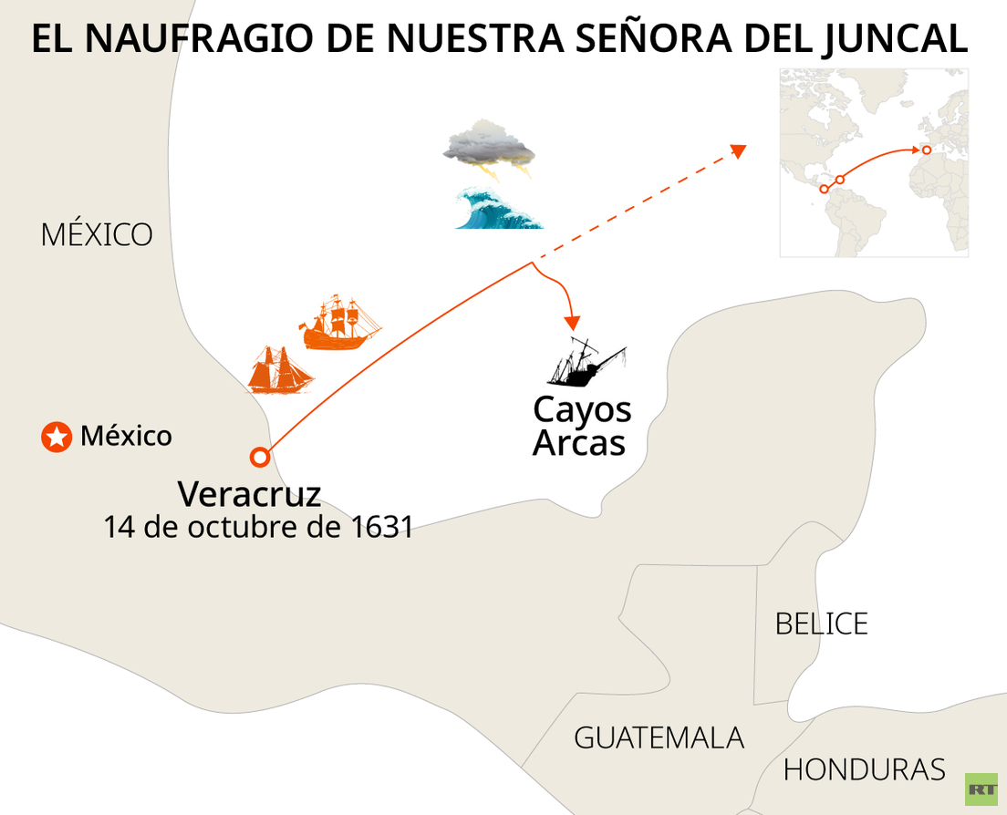 "Si bien, de encontrarse el pecio, este sería legalmente propiedad de España, en realidad el Juncal es un patrimonio cultural compartido, según quedó establecido en un Memorándum de Entendimiento, firmado por México y España en 2014", indica INAH.