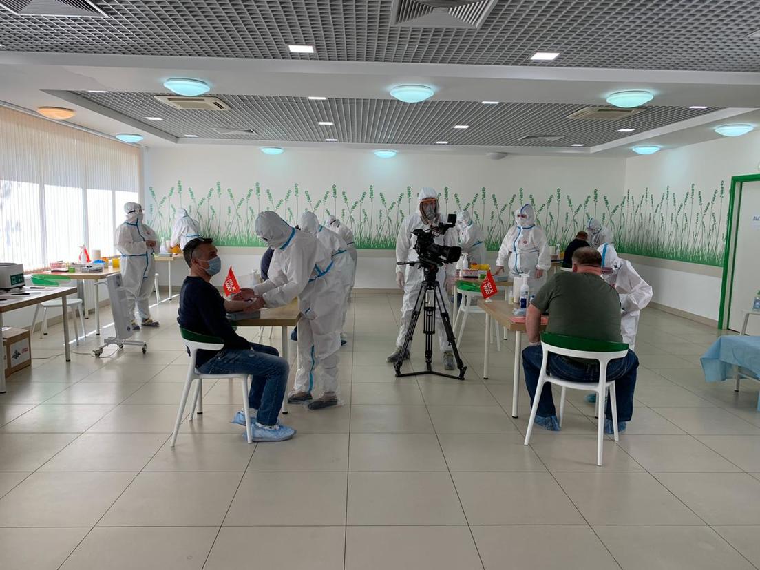 En la sede de RT en Moscú se ha instalado un laboratorio temporal para realizar pruebas de detección de anticuerpos contra el coronavirus a empleados. Los test permiten determinar la presencia o ausencia de ciertas proteínas sanguíneas que muestran si una persona ha portado el virus en algún momento —incluso si nunca tuvo síntomas— o si aún no ha sido infectada.