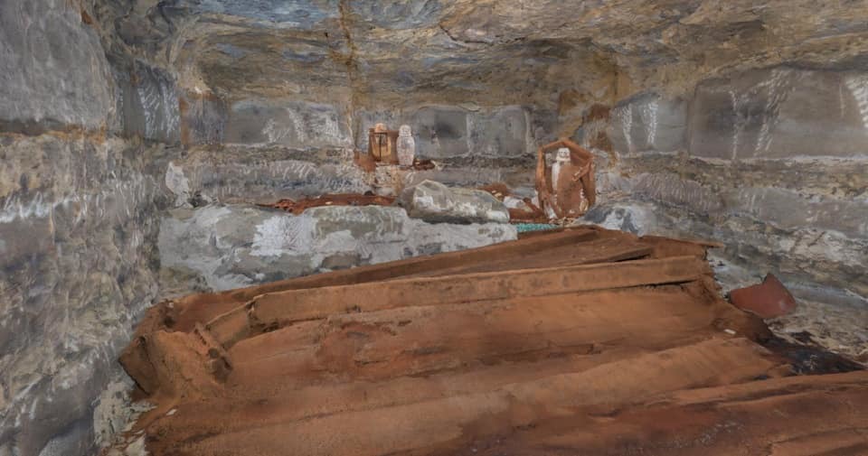 Según informó el secretario general del Consejo Supremo de Antigüedades egipcio, Mostafa Waziri, la cámara recién descubierta contenía cuatro sarcófagos de madera en mal estado de conservación.