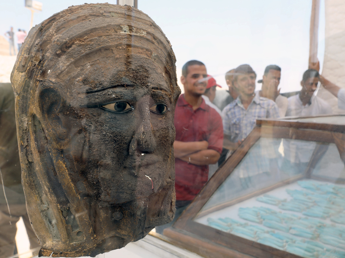 El taller de momificación y el lugar de entierro colectivo contiene cinco cámaras funerarias de la dinastía XXVI (664-525 a.C.), que albergaban 54 momias y esqueletos, cinco grandes sarcófagos, una docena de jarras canópicas, una máscara de momia de plata dorada y miles de 'ushebti', unas figurillas antropomorfas cuyos espíritus debían servir al difunto en la otra vida. Ambos lugares fueron encontrados en 2018 y ahora, después de más de un año de excavación y documentación, los arqueólogos abrieron la sexta sala de entierro, que estaba escondida detrás de un muro de piedra de 2.600 años de antigüedad.