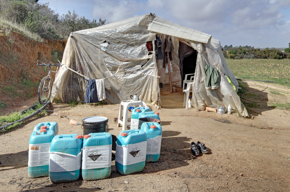 Están a la vista de todos y también en pleno conocimiento de las autoridades locales, pero permanecen intactos en su sordidez: en estas agrupaciones de infraviviendas, fabricadas con desechos de obra (palés, ladrillos, cemento...) o con residuos de la actividad agrícola intensiva (plásticos y arcos invernadero, bocas de riego, cuerdas, lonas...) cohabitan miles de personas en condiciones de insalubridad y pobreza extrema: sin puntos de agua corriente, electricidad, calefacción, saneamiento o suministros de ningún tipo.
