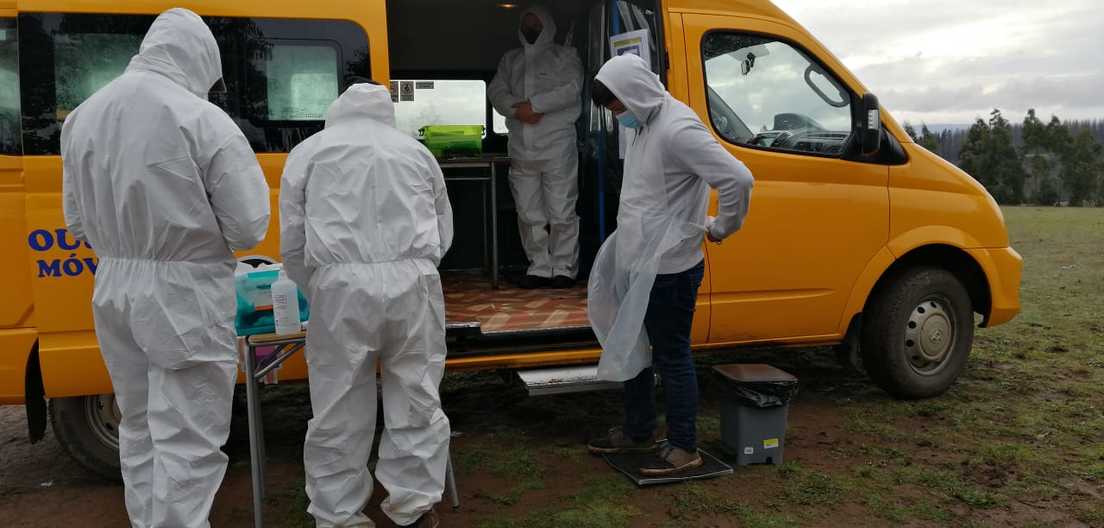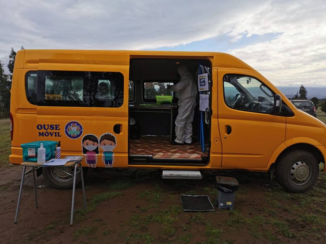 Si bien en Carahue se han reportado nada más que tres casos, se elaboró un protocolo estricto para el uso de las furgonetas: a cada alumno que sube se le toma la temperatura y se le coloca elementos básicos de protección como mascarilla y cubre calzados. La desinfección de manos, además, es obligatoria antes y luego de terminar la clase. Es en ese espacio que los profesores viajan hasta la casa de cada niño y lo asisten de forma individual, trabajando en diferentes contenidos curriculares a través de computadoras portátiles. Según los datos de la escuela, logran visitar un total de ocho estudiantes por día.