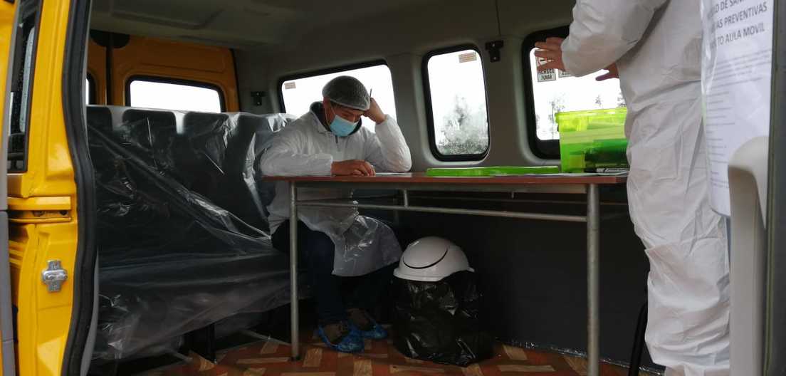 El instituto contaba con dos vehículos amplios y convencionales que, tras un consenso entre los maestros, adaptó por completo y los convirtió en aulas rodantes. Se desmanteló la parte trasera para colocar una mesa y sillas con dos metros de distancia; los asientos del conductor y acompañante cuentan una fibra de separación para evitar contacto; todo su revestimiento interno se reemplazó por un material permeable para sanitizar adecuadamente y se colocó una pizarra, junto otros elementos didácticos.
