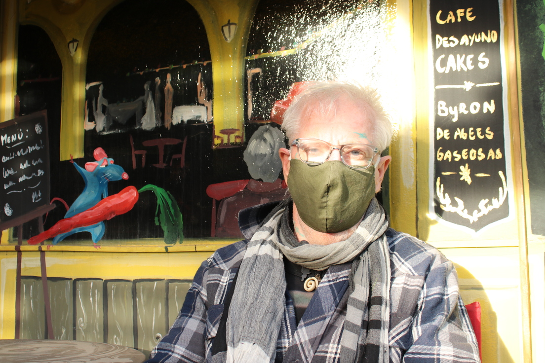 Rubén Díaz llega a la entrevista en su auto, un vehículo revestido por ocho colores totalmente mezclados entre sí, como si hubiera atravesado un arcoíris de pintura fresca a toda velocidad. Baja lento, acomodándose un barbijo verde y dejando ver sus ojos huidizos. Tiene pintura verde en las cejas y en las manos. Aunque es un arquitecto de 67 años con más de 600 inmuebles construidos por toda la ciudad, él se despoja de cualquier etiqueta académica y se presenta como un "arquitista".