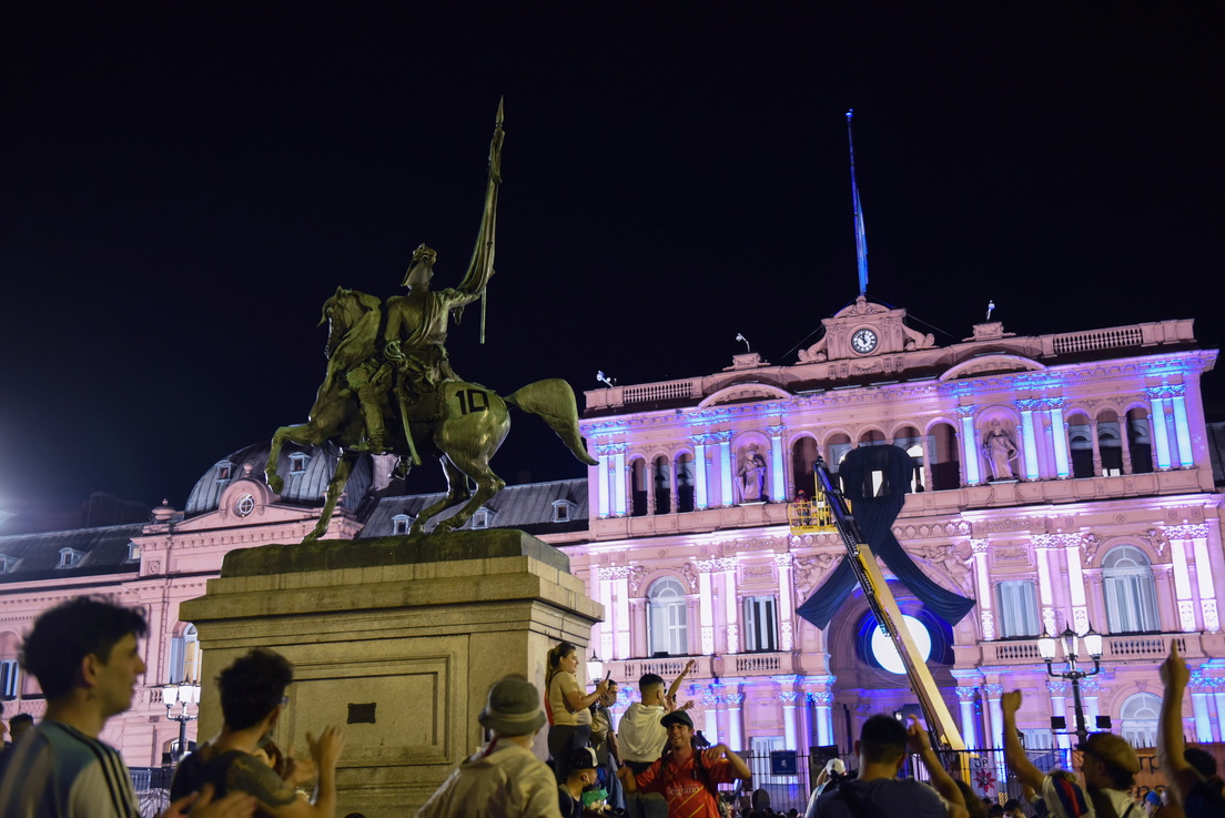 En las rejas de la Casa Rosada quedan colgadas mantas con leyendas todavía más contundentes: "Dios es argentino y peronista. Hasta la victoria siempre, compañero", advierte una. "No me importa lo que hiciste con tu vida. Me importa lo que hiciste con la mía", completa la otra.