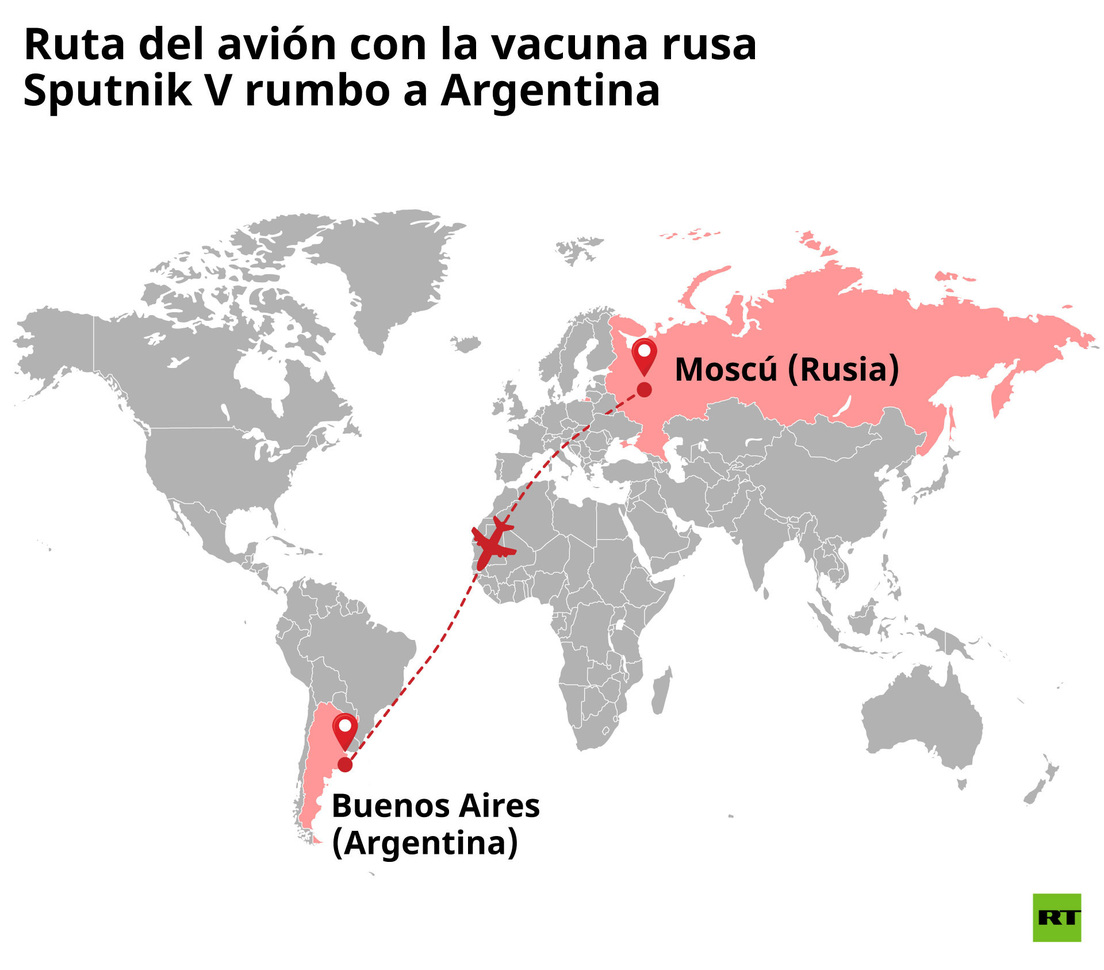 El vuelo de Aerolíneas Argentinas AR1061, que partió desde Moscú con 56 contenedores térmicos que transportan las primeras 300.000 dosis de la vacuna rusa Sputnik V contra el covid-19, ha aterrizado a Buenos Aires este jueves a las 10:26 (hora local).