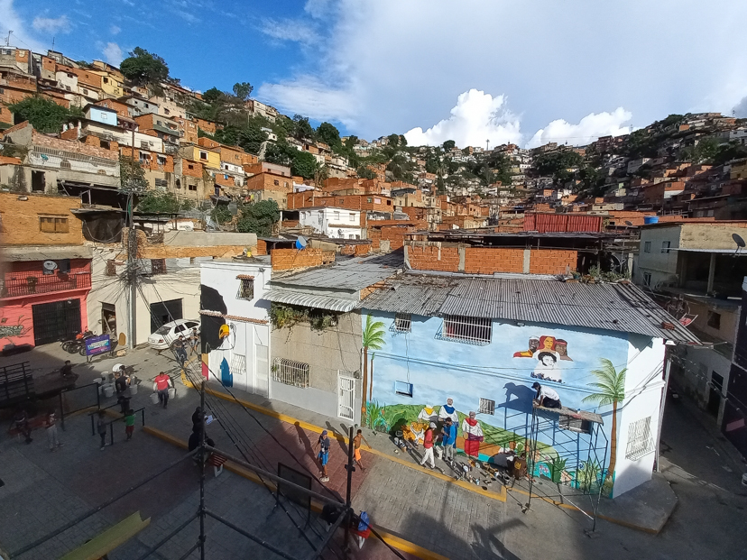 Explica que actualmente hay unas diez casas que están interviniendo, además de la parte trasera del Teatro Alameda, inaugurado en 1943. "Este sitio era un basurero y le decían cementerio porque encontraban cuerpos", dice mientras señala un colorido mural de 50 metros que describe la vida cotidiana del barrio. En su creación, que llevó solo seis días, también participaron estudiantes de la Universidad de las Artes como parte del Plan Caracas patriota, bella y segura, desarrollado por el Gobierno venezolano, a propósito del bicentenario de la Batalla de Carabobo y Día del Ejército.