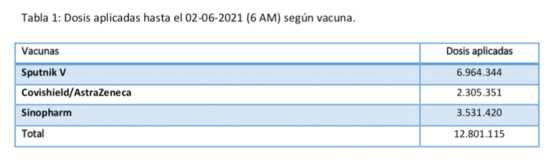 Argentina detalla los efectos adversos reportados tras el uso de las vacunas Sputnik V, Sinopharm y AstraZeneca/CovidShield