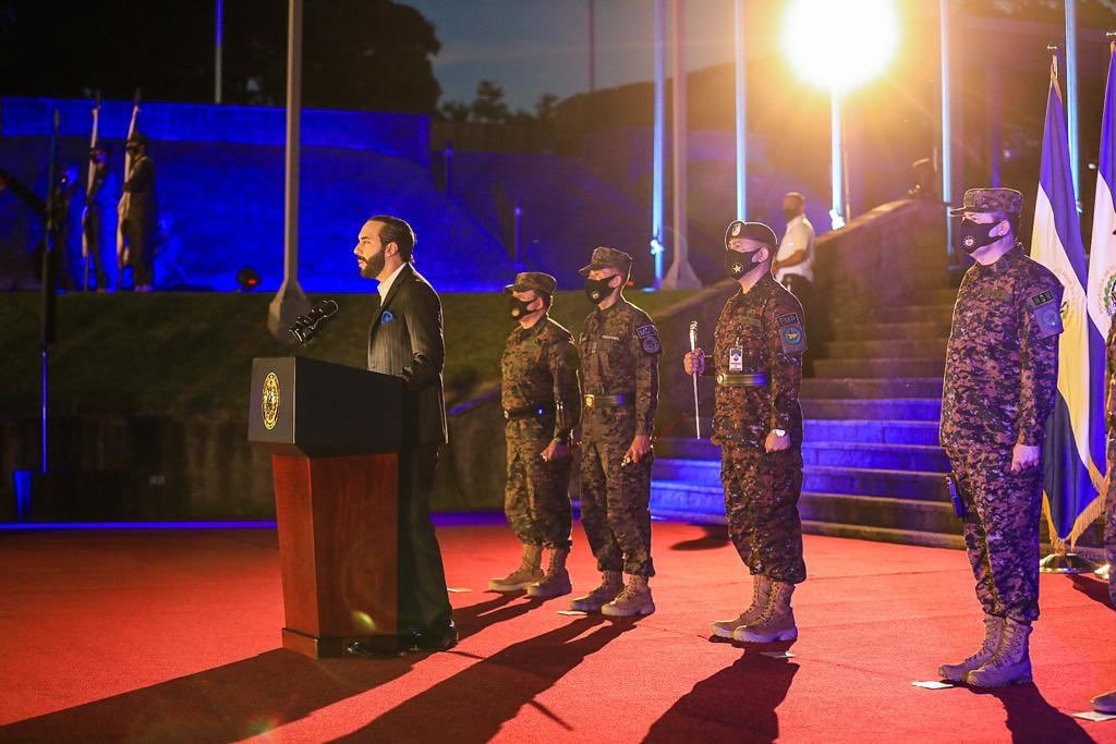 "El día de mañana veremos los resultados de estos 1.046 hombres y mujeres que se suman a la Fuerza Armada, que estarán patrullando nuestras calles, abordando las unidades de transporte colectivo, en las paradas de buses, en los centros históricos y dándole seguridad a nuestra población", dijo Bukele.