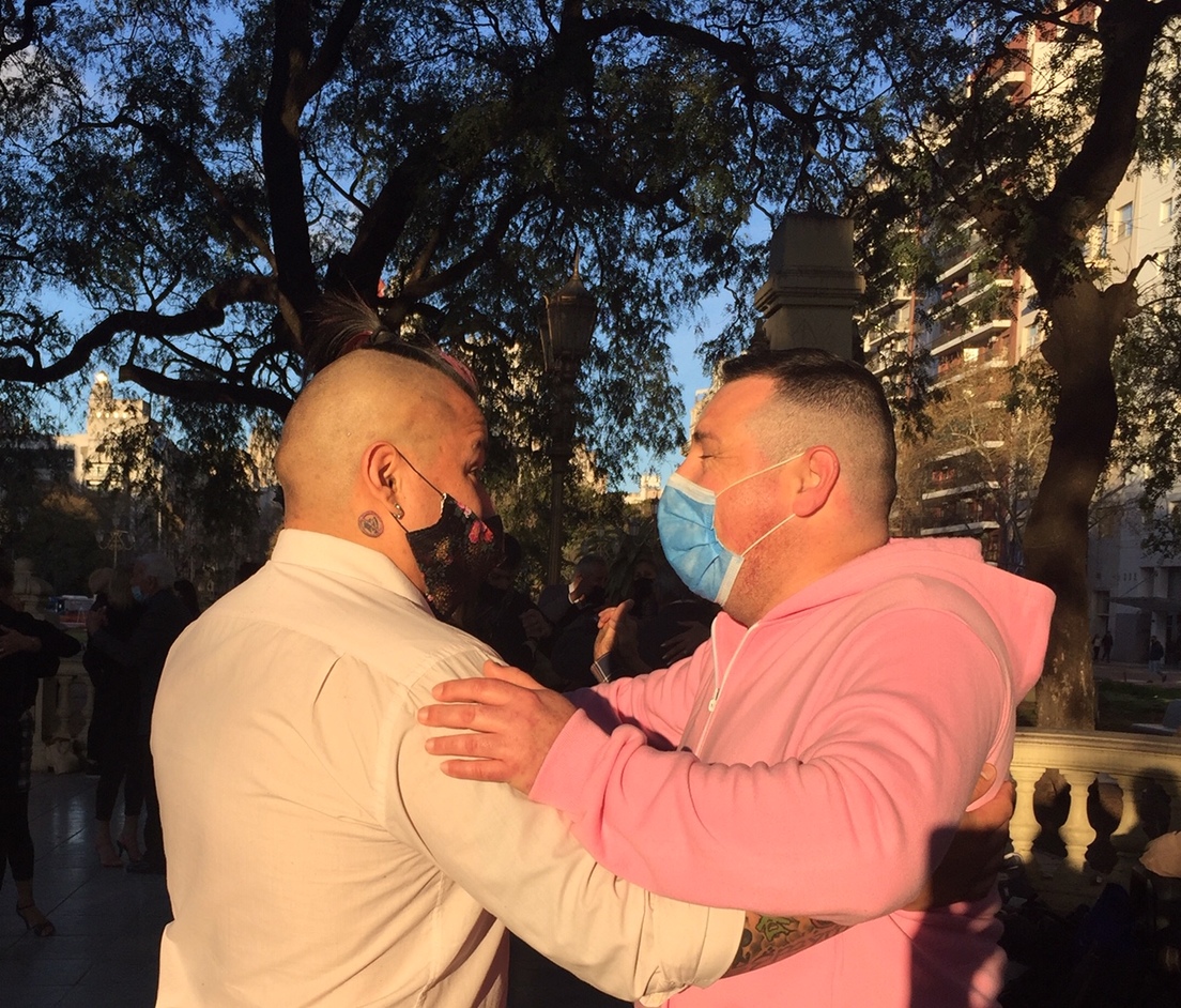 "Ya me di las dos dosis", explica un hombre delgado y canoso un lunes por la noche en una milonga callejera del barrio de Almagro. Justifica así su negativa a usar cubrebocas porque le incomoda para bailar. Cuando le explico que pone en riesgo a sus parejas y a quienes están alrededor, se limita a sonreír y encoger los hombros.