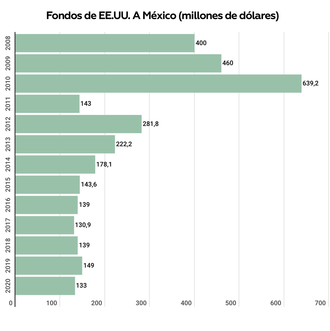 Las donaciones de EE.UU. a México en el marco de la Iniciativa, no obstante, nunca se detuvieron. Según cifras reportadas por el Congreso de EE.UU., el Gobierno de López Obrador recibió recursos por un monto equivalente a 421 millones de dólares entre los años fiscales 2018 y 2020.