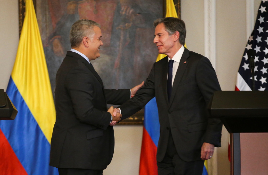 Blinken pidió "atacar las raíces del narcotráfico" como "la inequidad, la corrupción, la impunidad" para "invertir en la prevención y la recuperación de quienes están luchando contra la adicción". Según el Banco Mundial, Colombia es el segundo país más desigual de América Latina, después de Brasil.
