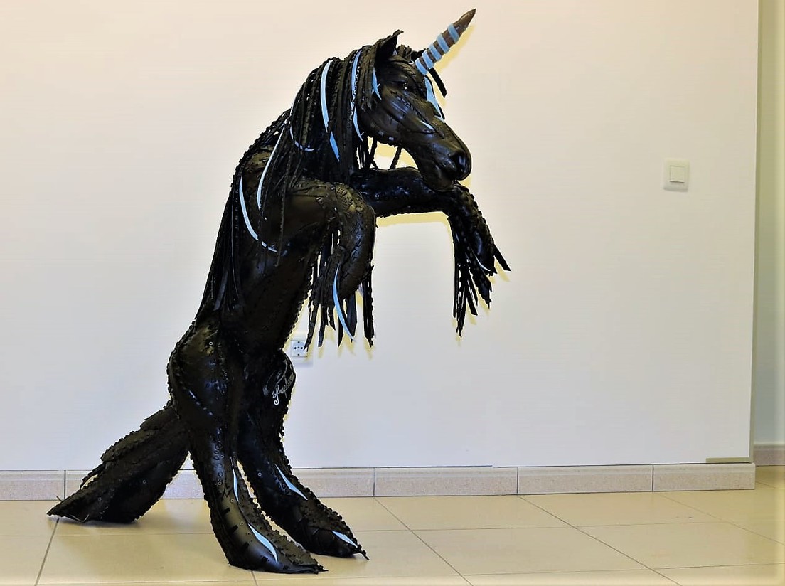 Una de ellas era de un ave que obtuvo toda su atención y lo hizo pensar que al regresar a España —donde vive desde pequeño junto a su madre— podría dedicarse a realizar obras de arte a partir de las llantas recicladas.
