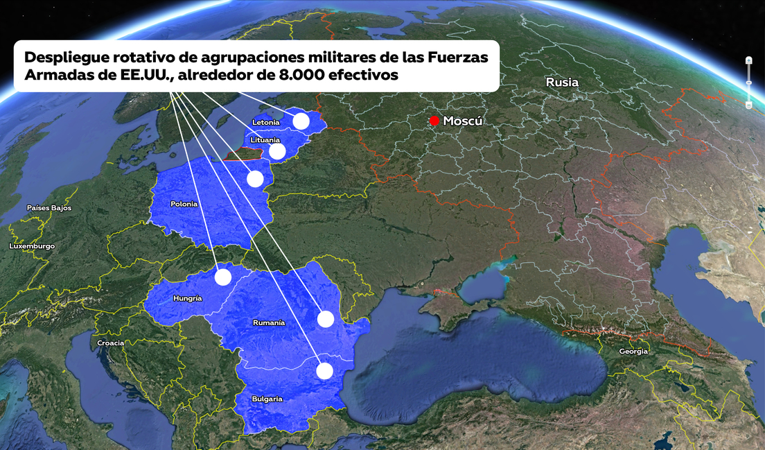 Anteriormente, el ministro de Defensa de Rusia, Serguéi Shoigú, denunció que Washington aumentó su presencia militar cerca de las fronteras de Rusia, detallando que cerca de 8.000 militares estadounidenses están desplegados en Europa del Este. Asimismo, advirtió que compañías militares privadas de EE.UU. están preparando "una provocación con componentes químicos" en el este de Ucrania.
