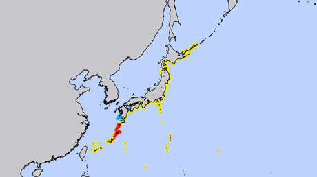 En particular, el medio indica que las olas se registran desde el área de Tohoku, en la parte central de la isla de Honshu, hasta la isla de Okinawa, una de las más meridionales del país.