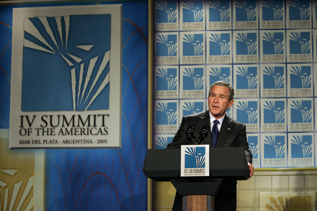 El objetivo central era echar abajo el Acuerdo de Libre Comercio de las Américas (ALCA) que EE.UU. había promovido durante años, y que Bush esperaba que se firmara en ese encuentro.