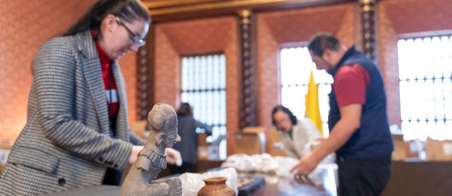 Los bienes arqueológicos fueron enviados al Palacio de San Carlos, sede del Ministerio de Relaciones Exteriores, en el centro histórico de la capital del país suramericano. Allí, un equipo del ICANH desembaló las 58 cajas, revisó el estado de las piezas y se encuentra estudiando cuál es el significado de esos elementos para las culturas originarias de las que proceden.