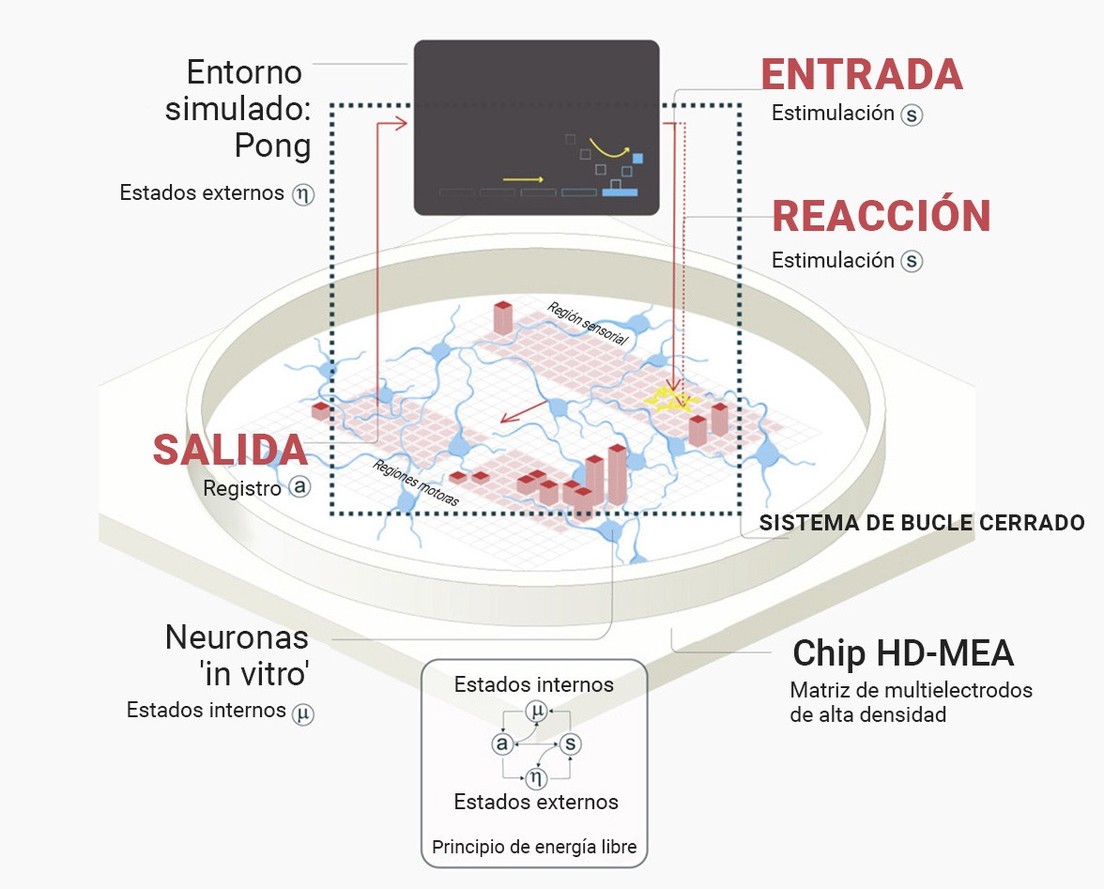 Un equipo de científicos ha demostrado por primera vez que 800.000 células cerebrales 'in vitro' pueden realizar tareas dirigidas a determinados objetivos, como por ejemplo aprender a jugar al videojuego Pong, según un artículo publicado este miércoles en la revista Neuron.