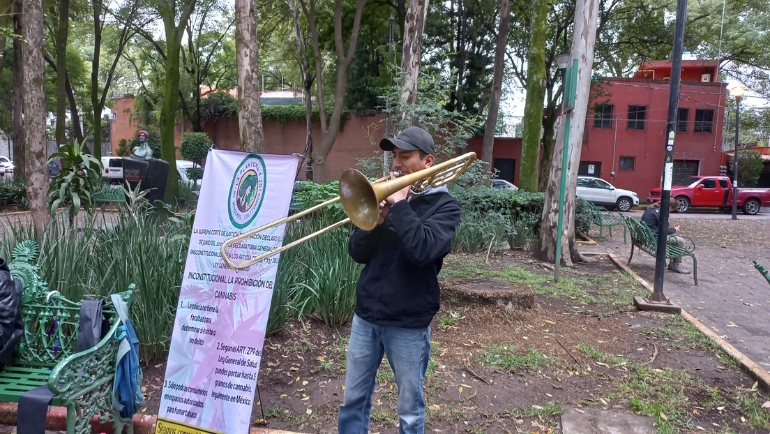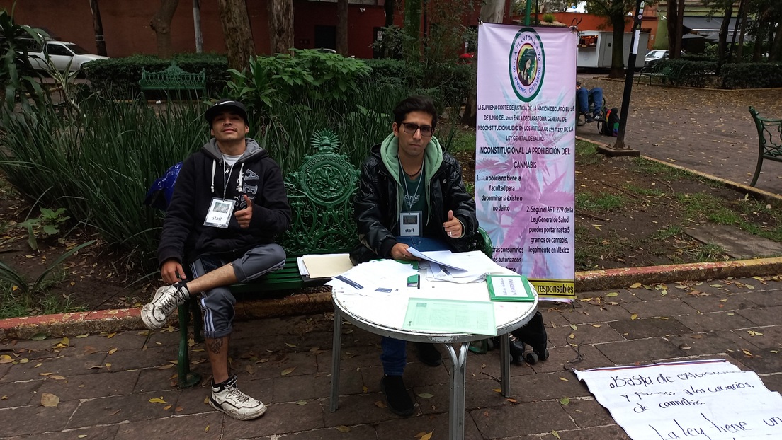 En este parque de la alcaldía Coyoacán de Ciudad de México se ha instalado uno de los espacios de consumo seguro de marihuana, plantones habilitados por activistas cannábicos para protestar por el embrollo en el que se encuentra la legislación respecto al consumo de esta planta y para que personas como Adrián puedan venir a fumarse un 'porro', casi con total tranquilidad, durante sus horas de comida en el trabajo.