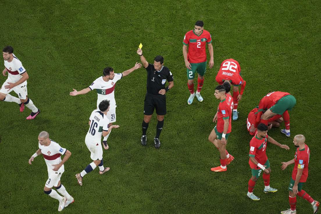 En el segundo minuto del tiempo añadido los marroquíes se quedaron con 10 tras mostrar el árbitro dos amarillas en dos minutos el delantero Walid Cheddira. Finalmente, el asedio portugués terminó sin éxito, confirmándose así la hazaña marroquí. Después de mantener su portería a cero en este partido, Marruecos sigue como la selección menos goleada en esta edición del certamen mundialista.