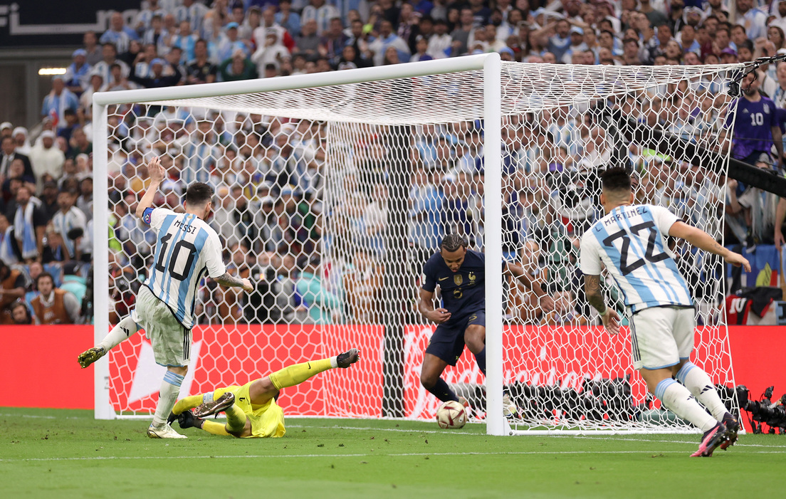 Ya en el alargue, al 107', Messi consiguió el tercer tanto argentino tras rematar de un rebote a escasos metros de la portería, mandando el balón al fondo de las redes.