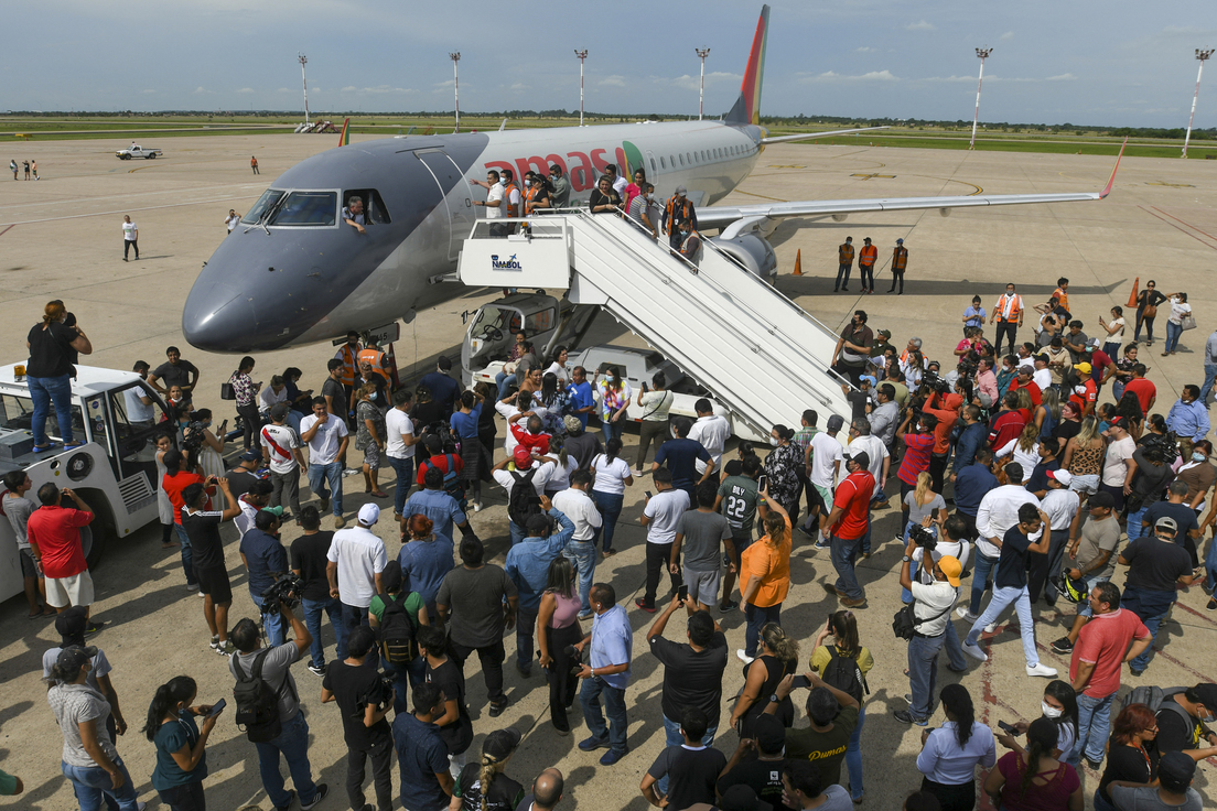 Cientos de simpatizantes de Camacho y del Comité Cívico Pro Santa Cruz salieron a las calles de la ciudad de Santa Cruz y se movilizaron de inmediato para irrumpir las pistas de los aeropuertos de El Trompillo y Viru Viru e impedir el despegue de las aeronaves.