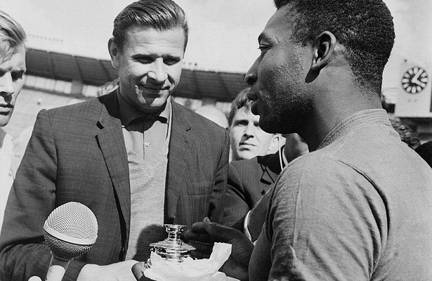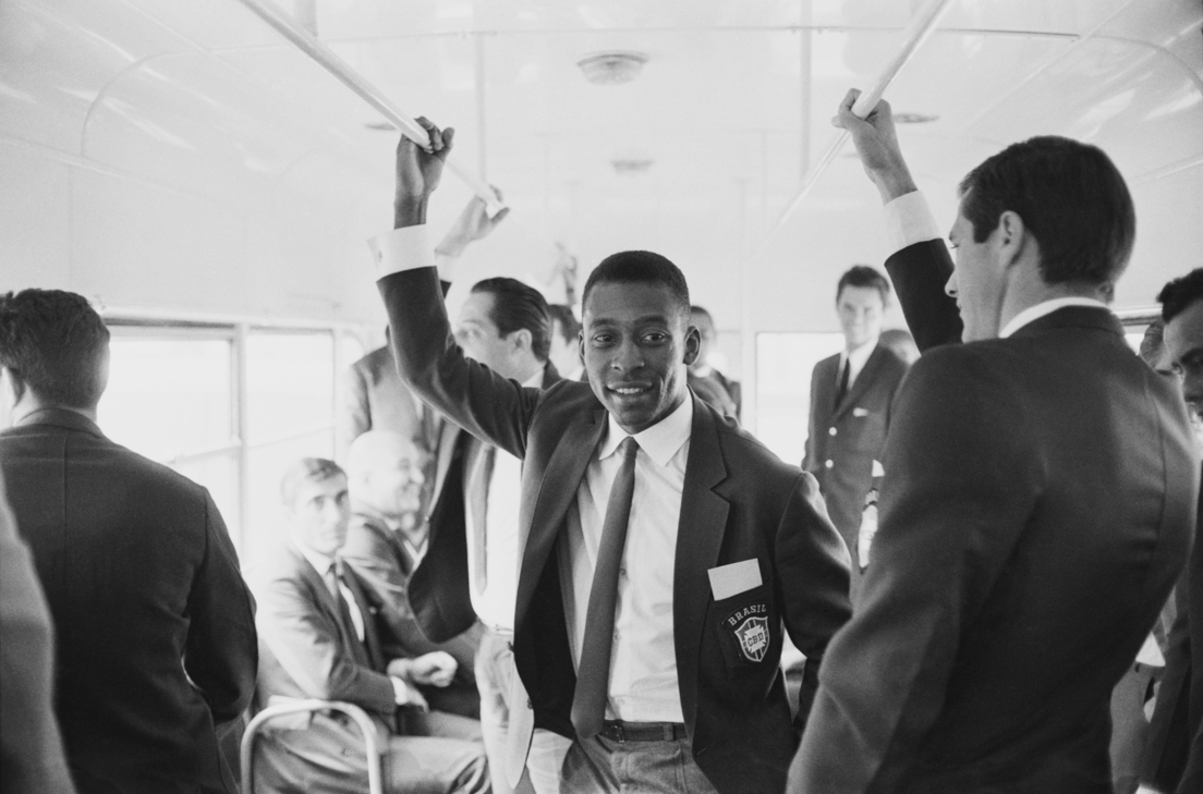 Pelé tras su llegada al Reino Unido para la Copa Mundial de la FIFA Inglaterra 1966, el 25 de junio de 1966Len Trievnor/Daily Express/Hulton Archive / Gettyimages.ru