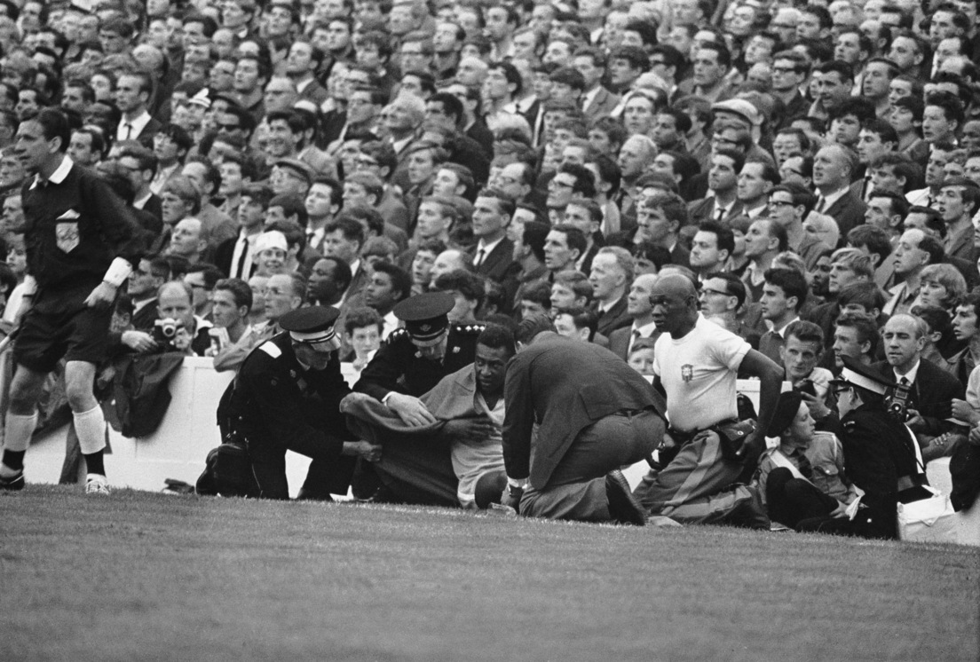 Pelé lesionado durante un partido de Brasil contra Portugal, el 19 de julio de 1966Central Press/Hulton Archive / Gettyimages.ru