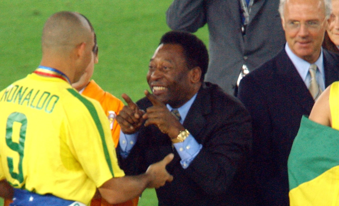 Pelé felicita a Ronaldo tras la victoria de Brasil en la Copa Mundial de Fútbol de 2002, el 30 de junio de 2002Neal Simpson/EMPICS / Gettyimages.ru