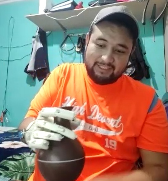 Su última prótesis es de resina de poliuretano, y asegura que le gustaría, poco a poco, hacerlas de mejores materiales, incluso de plástico reciclado. Por ello, busca apoyo económico para comprar una máquina extrusora, que puede costar alrededor de 12.000 dólares. "La ventaja es que tritura el plástico, lo funde y sale una amalgama maleable que se puede poner en moldes", afirma.