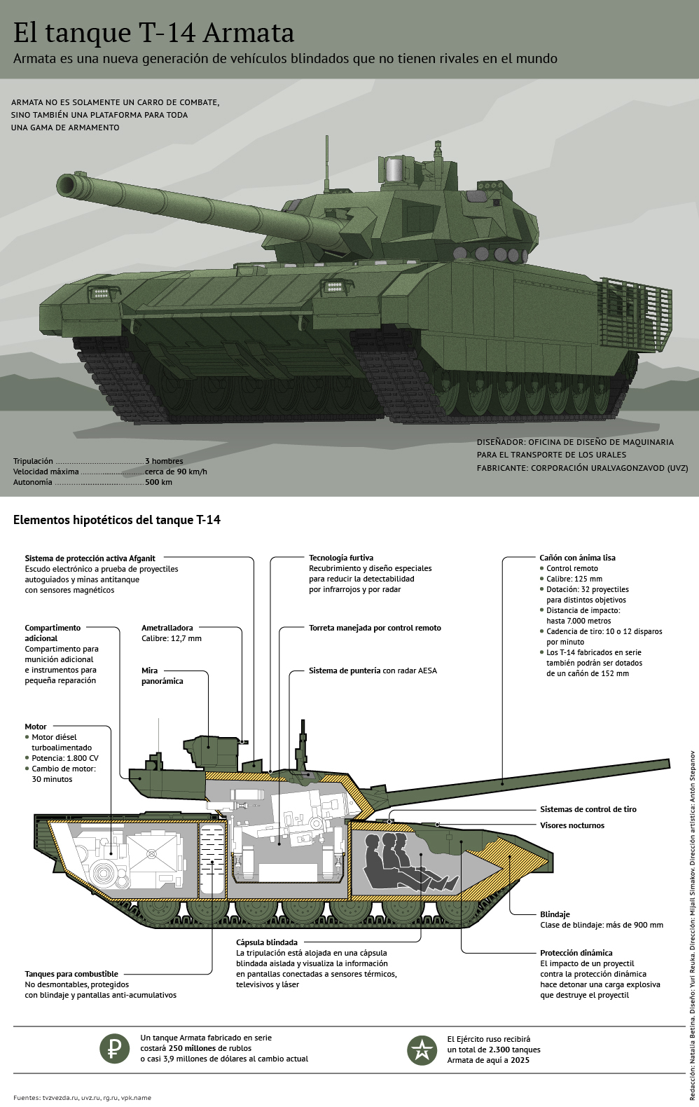Fabricante: El consorcio Uralvagonzavod (URVZ), con sede en la ciudad rusa de Nizhni Taguil (en los Urales).