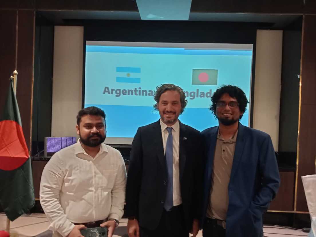 Mohammad Nehal Abedin Tonmay tiene 36 años, es agente de futbolistas y ofició como traductor al español durante la apertura de la sede diplomática argentina en Daca. En diálogo con RT, describió la jornada como "histórica" y agradeció al canciller por reabrir una embajada que había sido inaugurada por el Gobierno de Juan Domingo Perón en 1974, y cerrada cuatro años más tarde por la dictadura cívico-militar.