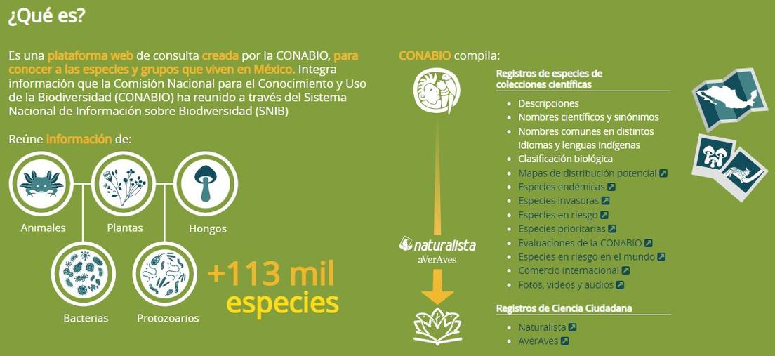 "Nosotros cumplimos 10 años promoviéndola, la adaptamos a México, tradujimos todo", dijo. En la plataforma incluyeron los municipios del país, las áreas protegidas, las listas de especies nativas, endémicas, exóticas, con nombres en español y en lenguas indígenas.