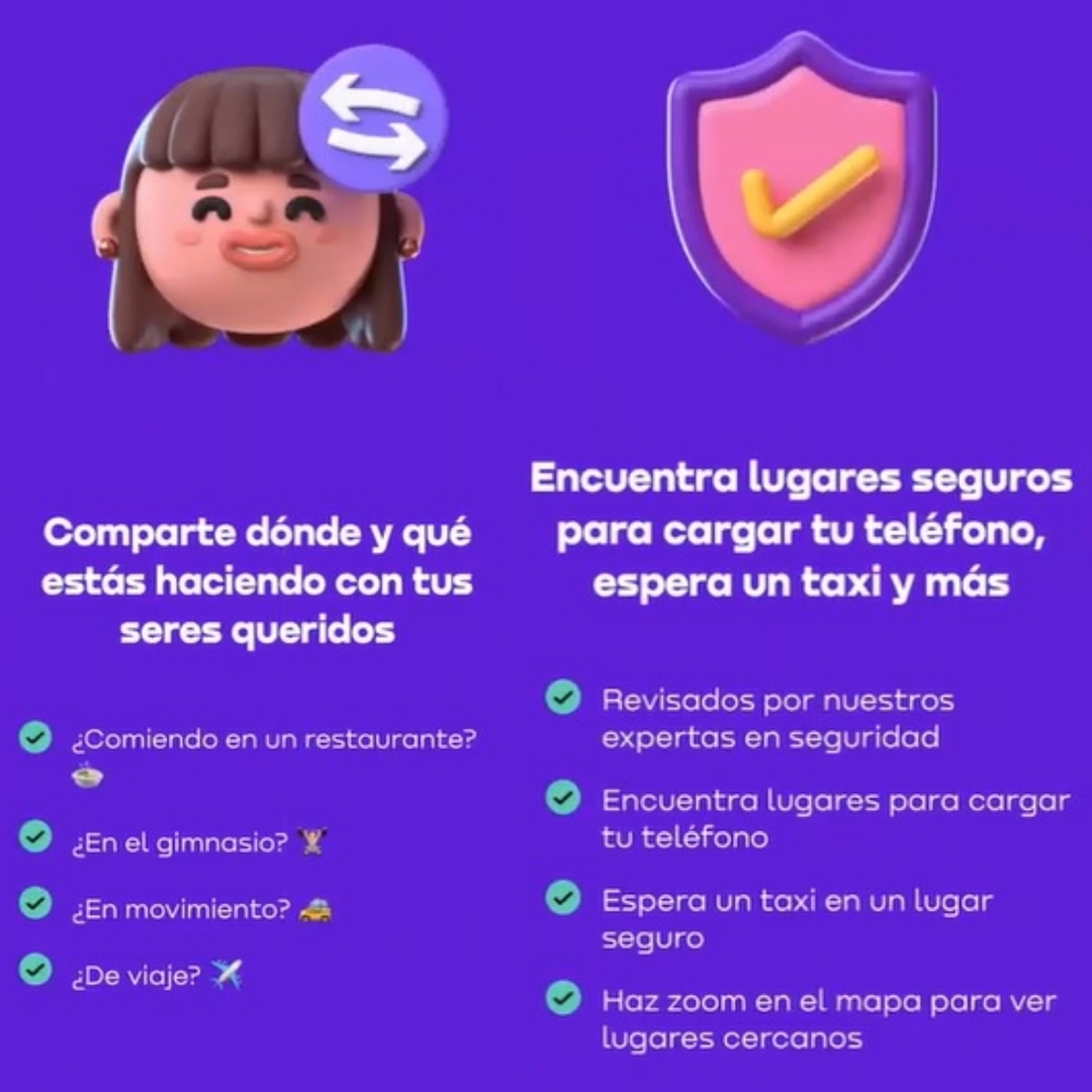 Asimismo, la plataforma cuenta con los llamados puntos morados, que funcionan como sitios de resguardo, seguros, para las mujeres. "Hemos hecho alianzas estratégicas para que puedas ver cuáles son lugares seguros, a donde te puedes acercar en caso de cualquier situación", explica.