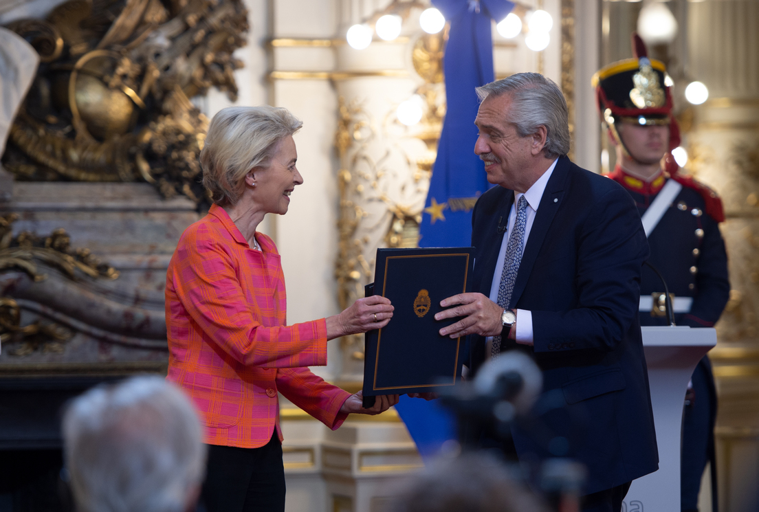 En Argentina, donde la UE tiene el 40 % de inversión extranjera, Von der Leyen cerró con Fernández un acuerdo de entendimiento, mediante el cual los europeos se involucrarán en agregar valor a la producción de litio.
