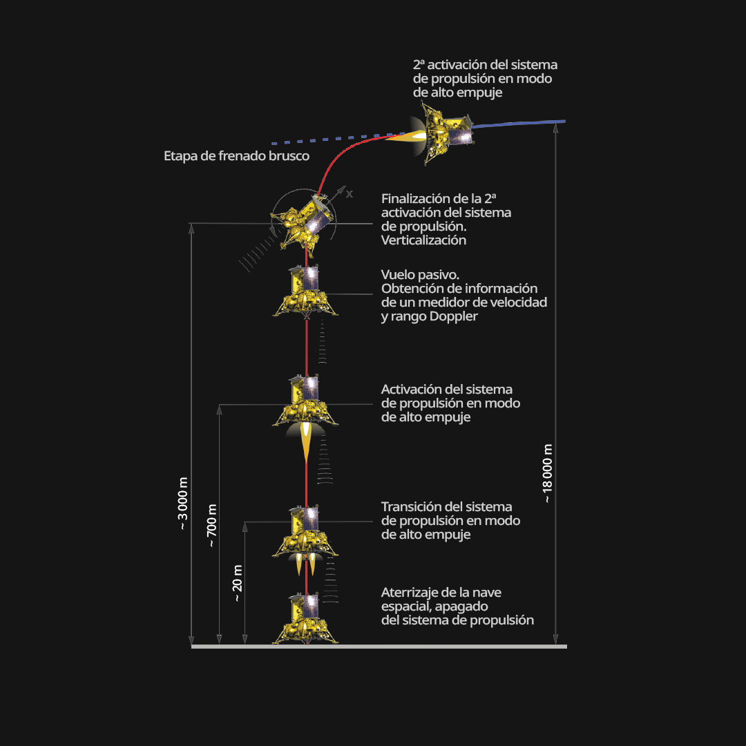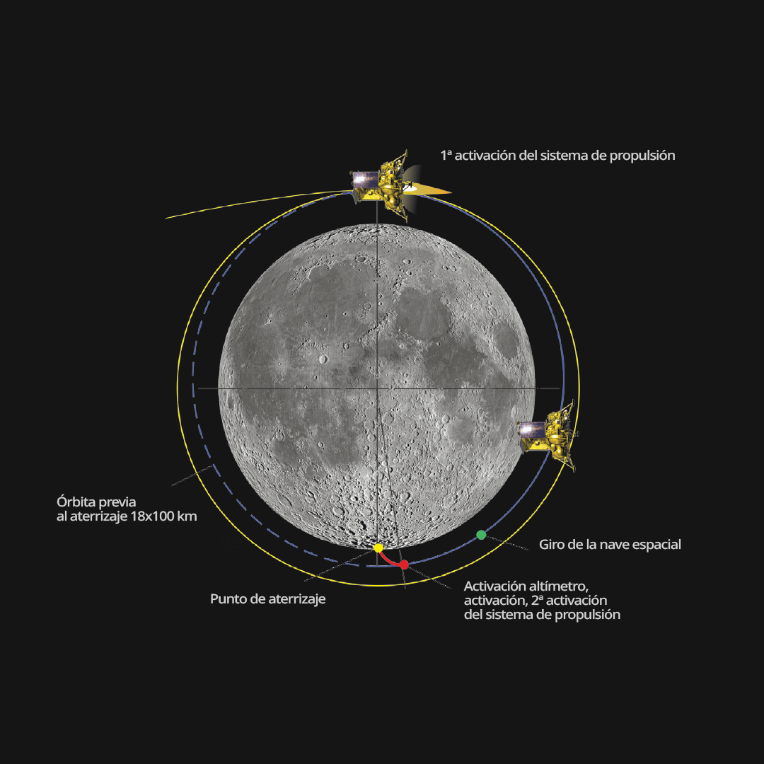 Tras una serie de maniobras con los motores de la sonda espacial, Luna-25 descenderá lentamente para lograr alunizar cerca del polo sur.
