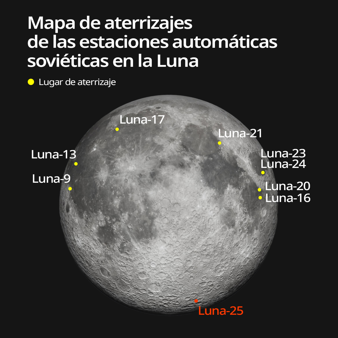 Luna-25 se convertirá en la primera sonda en alunizar en la región polar, ya que sus predecesoras habían logrado posarse en la zona ecuatorial del satélite.