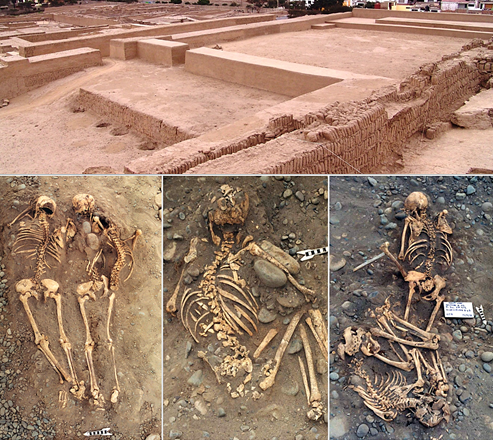 Los restos, junto a vasijas de cerámica, fragmentos textiles y objetos laminados, fueron encontrados en Huaca Pucllana, una de las 400 huecas, o sitios con ruinas arqueológicas, ubicadas en varios barrios urbanos.