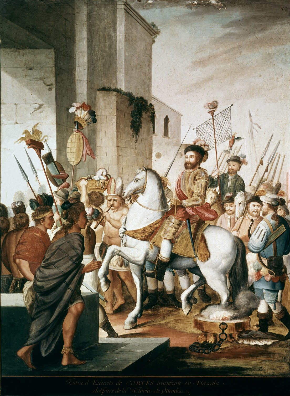 C.B.: La imagen que los conquistadores van a difundir y considerar positiva es La Malinche o Doña Marina. Esta mujer indígena descubre que el conquistador es un hombre superior y que esa civilización le conviene a su pueblo. Por ello, se presta para ayudarlo a traducir su mensaje para los indígenas y le explica las cosas que sus compañeros le dicen.