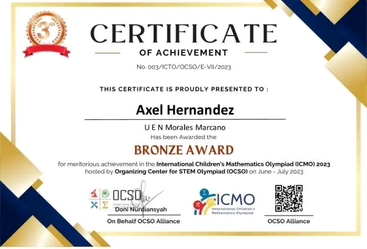 Los dos últimos reconocimientos de este año fueron: en las Olimpiadas Latinoamericanas "Matific 2023", en la que repitió la presea de rubí; y en las Asiáticas de Cálculo, en Yakarta, Indonesia, donde ganó bronce y fue el único niño que compitió contra jóvenes universitarios.