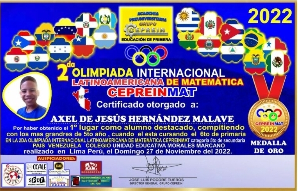 Ese mismo año participó en las Olimpiadas Latinoamericanas Preuniversitarias "Ceprein", organizadas en Perú. En esa competencia ganó la medalla de oro y Axel fue el único niño de 11 años que se midió contra jóvenes de 16 a 19 años. El 2022 lo cerró con el Torneo de Matemática Binomio, realizado en Nuevo León, México, en el que obtuvo una mención honorífica.