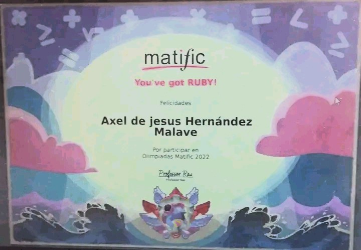 Axel logró competir por primera vez en una olimpiada internacional de matemática en la cita Latinoamericana de Primaria "Matific 2022". Este evento se realizó vía internet, como el resto en los que ha participado, y allí conquistó el máximo premio: la medalla de rubí.