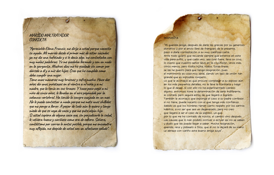 Aquí la respuesta siempre tenía el mismo sesgo y las palabras más repetidas eran paciencia y resignación, abogando por una mujer sumisa, siempre presta a complacer a sus padres estando soltera, y a su marido, de casada. Además, la culpa siempre recaía en las mujeres.
