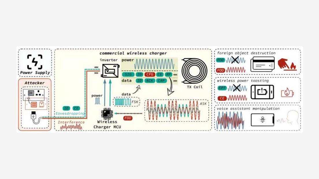 Los académicos describieron 3 tipos de ataques teóricos a los que denominaron 'VoltSchemer', dirigidos a vulnerabilidades en los sistemas de carga inalámbricos. Estos fallos podrían permitir a los atacantes dañar los dispositivos por sobrecarga o sobrecalentamiento; manipular asistentes de voz mediante comandos de voz inaudibles y eludir los mecanismos de detección de objetos extraños del estándar Qi (electricidad por inducción) para dañar elementos expuestos a campos magnéticos intensos.