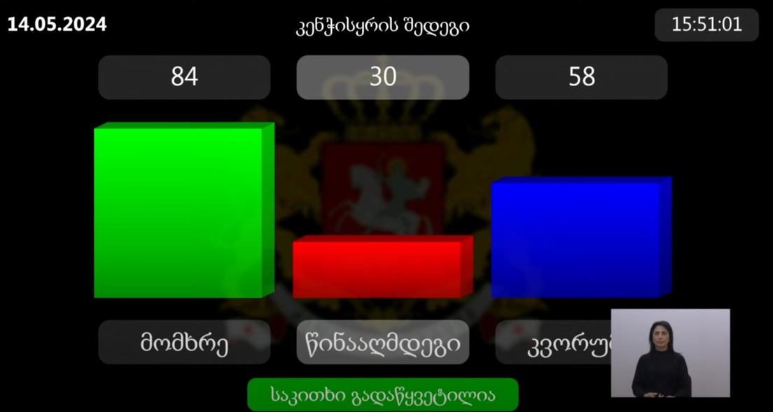 Para que entre en vigor tras la aprobación del Parlamento, el documento será enviado a la presidenta de Georgia, Salomé Zurabishvili, para su firma. Sin embargo, la mandataria advirtió con antelación que planea imponerle su veto, pero se prevé que los promotores del polémico proyecto de ley logren superarlo.