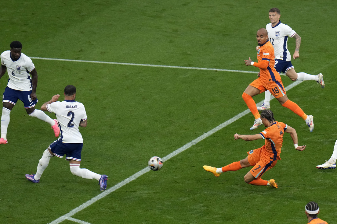 Tan temprano como en el minuto 7 llegó el gol que el abrió el marcador favorable al conjunto neerlandés. Su delantero, Xavi Simons, disparó un espectacular derechazo desde el borde del área que superó al portero inglés y se metió en la portería.