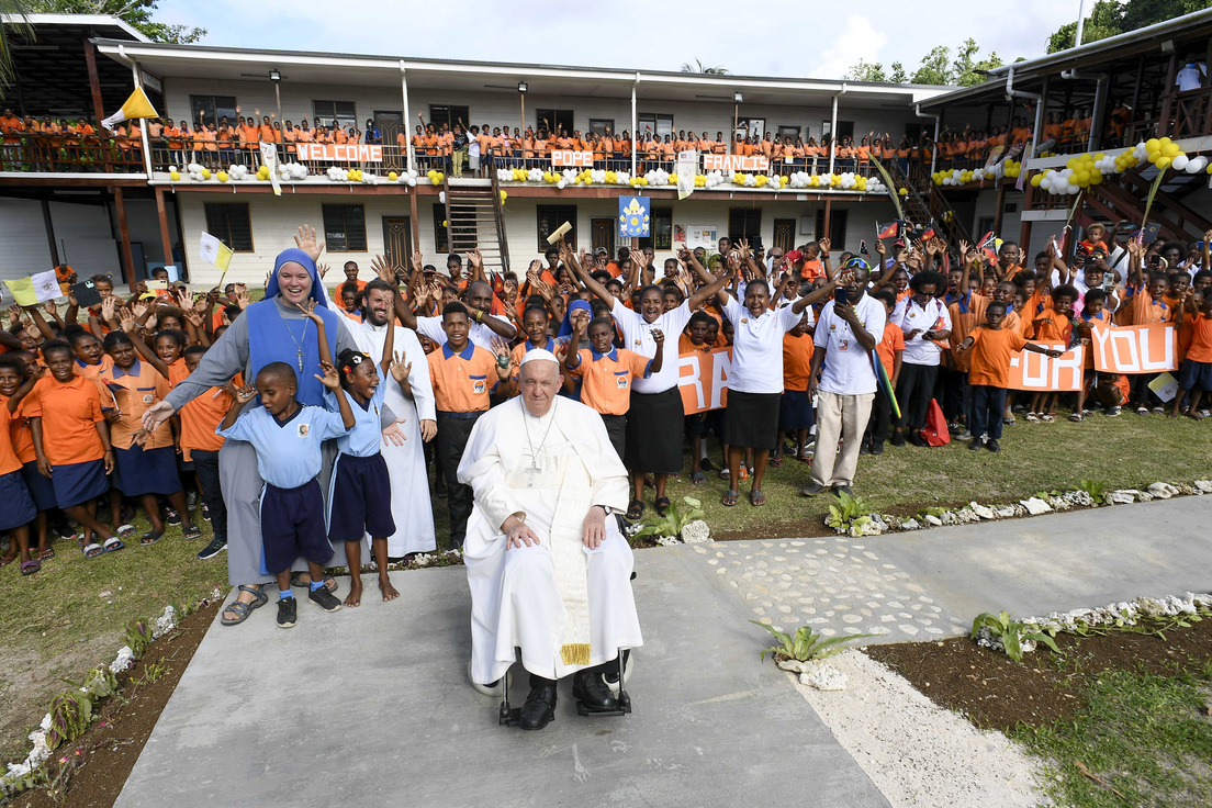 Francisco voló a bordo de un avión de transporte C-130 de la Real Fuerza Aérea Australiana desde la capital de Papúa Nueva Guinea Port Moresby a Vanimo. Allí, se reunió con la comunidad católica local y con misioneros de su Argentina natal. Se calcula que unas 20.000 personas cantaban y bailaban en el campo frente a la catedral de Vanimo cuando llegó el pontífice.