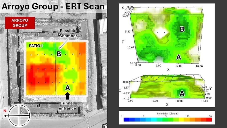 Asimismo, los expertos mencionaron que visualizaron anomalías geofísicas subterráneas en los grupos Adobe, Arroyo y Sur, así como los posibles restos de una antigua escalera monumental debajo del piso de una gran estructura denominada como 'Palacio', ubicada en el grupo de las Columnas.
