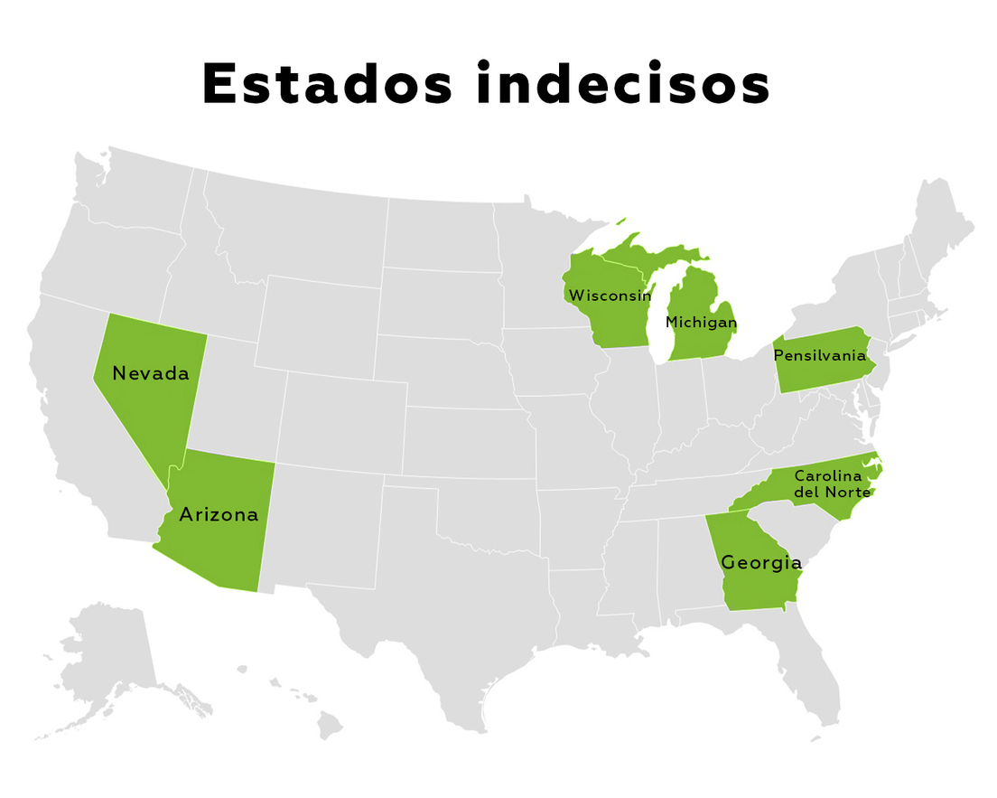 Los analistas políticos identifican en general siete estados indecisos clave para este ciclo electoral: